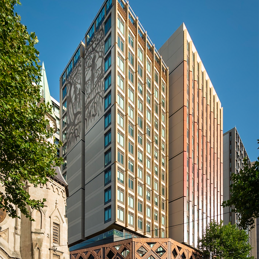 Aspects of this building were designed following consultation with local Gadigal Elders: Aunty Nadeena Dixon, Uncle Allan Madden and Uncle Charles ‘Chicka’ Madden. Aunty Nadeena is a practising weaver, and weaving patterns have been incorporated into the façade of this building.